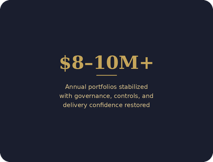 Director and executive-level leader across healthcare and technology. I operate at the intersection of strategy, governance, and execution, typically engaged when portfolios have lost direction, delivery has slowed, and operating models no longer support what leadership needs to accomplish.